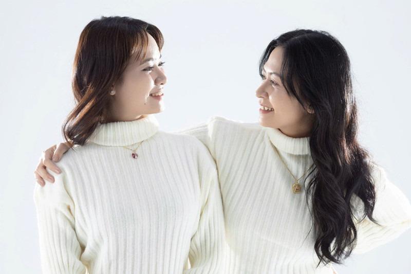 Như Ý (đeo dây chuyền vàng) hơn Tuyết Nhi 11 tuổi