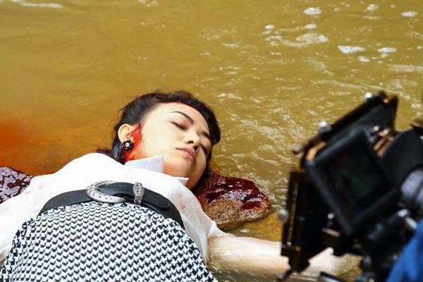 Ngoài cảnh quay dưới suối lạnh thấu xương, Tinna Tình cũng không quên cảnh cô nằm chết trong quan tài. "Tôi biết có nhiều người ngại nằm trong quan tài đóng phim vì sợ, kiêng kỵ. Tuy nhiên, tôi nghĩ đây chỉ là phim nên cũng không lo gì. Ban đầu cũng hơi có chút hồi hộp, vì bối cảnh ngôi nhà diễn ra đám tang của nhân vật Thu rất hoành tráng, huyền bí, mang cảm giác rợn người. Cũng may có đoàn phim đông đúc phía sau hậu trường nên tôi không còn sợ gì cả".