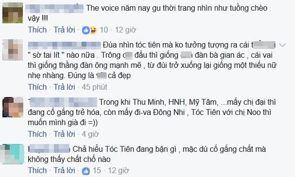 Đặc biệt, sau nhiều bộ cánh thảm họa từ những buổi ghi hình lần trước, Tóc Tiên tiếp tục mất điểm ở tuần này với hình ảnh siêu thủy thủ mặt trăng khó hiểu và quái dị. Huấn luyện viên diện mốt áo chất liệu vải bóng tafta với phần vai được đính kết siêu độc đáo của nhà thiết kế Nguyễn Công Trí.
