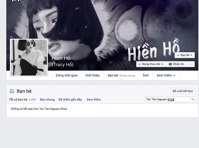 Không còn tìm thấy Tóc Tiên trong list bạn bè facebook của Hiền Hồ.