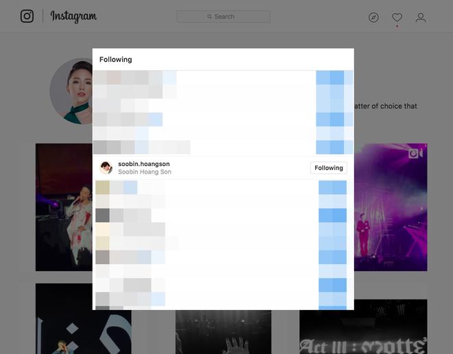 Trang instagram của Tóc Tiên cũng chỉ còn "follow" Soobin Hoàng Sơn, không còn theo dõi học trò.