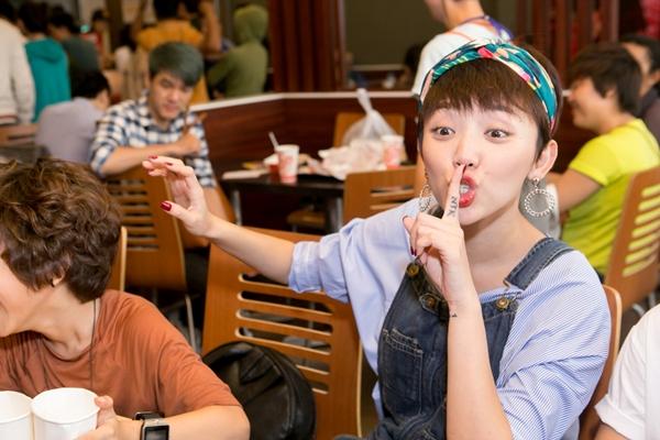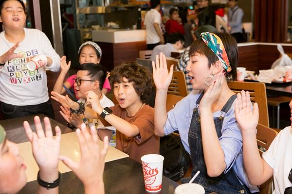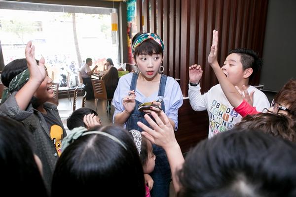 Chỉ có vài tiếng gặp gỡ các bé trước khi tiếp tục lịch trình đi biểu diễn , Tóc Tiên đã tranh thủ dẫn các bé đi ăn để các gương mặt nhí có thêm cơ hội trò chuyện, thân thiết với nhau. Nhiều vị phụ huynh tỏ ra bất ngờ khi chứng kiến cô Tóc Tiên một tay vừa “dẹp loạn” khi các “siêu quậy” ồn ào vừa tỉ mỉ ghi món ăn, vừa hỏi han từng bé. Điều thú vị là các bé cũng biết sinh nhật Tóc Tiên vừa mới qua chưa lâu nên đã cùng nhau bất ngờ hát tặng và chúc mừng sinh nhật cô Tiên.