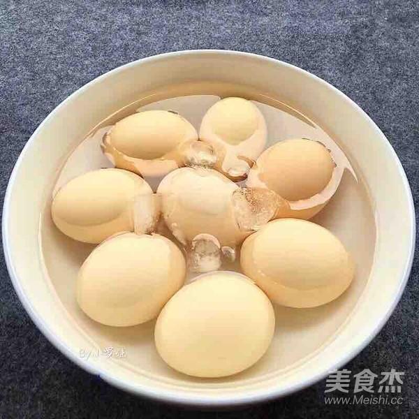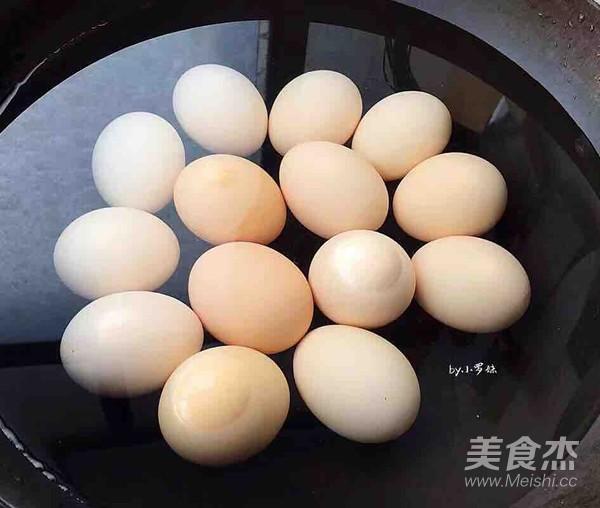 Bước 7: Cho trứng vào nồi, cứ thế đun trong vòng nửa giờ và có thế tắt bếp. Sau đó, lại tiếp tục đun tiếp nhỏ lửa vài giờ để nước cạn, sền sệt và ngấm vào trứng.