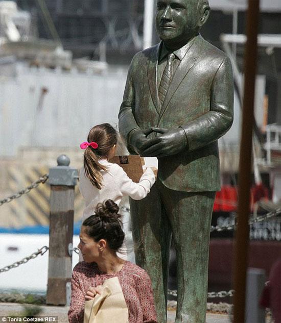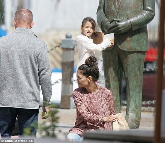 Trong khi Tom đang theo đuổi vụ kiện thì bé Suri đang tạm nghỉ học và rất vui vẻ đi cùng mẹ tới Nam Phi để đóng phim. Hôm 7/11 vừa qua, bé được nhìn thấy cùng mẹ đi chơi và ngồi ăn bánh ngọt ở quảng trường Nobel. Suri trông rất đáng yêu và cô bé còn ngộ nghĩnh mang bánh tới mời bức tượng cựu tổng thống Nam Phi ăn.