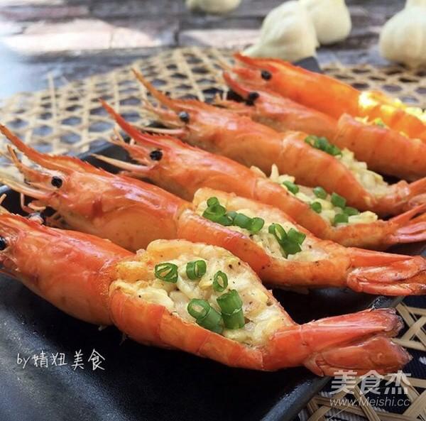 Bước 6: Cho hỗn hợp tỏi vào phần đuôi tôm đã rạch như hình