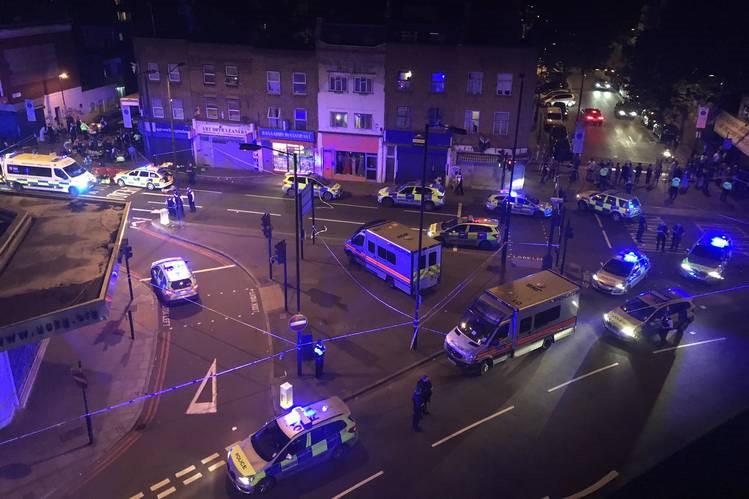 Một chiếc xe lao vào đám đông người đi bộ trên đường Saven Sisters ở phía bắc London vào lúc 0h20 ngày 19/6 khiến nhiều người bị thương hoặc thiệt mạng. Hội đồng Hồi giáo Anh cho hay "chiếc xe đã chạy qua người các tín đồ đang rời Thánh đường Công viên Finsbury ". Cảnh sát đã ngay lập tức có mặt và phong tỏa khu vực hiện trường. Ảnh: Twitter.