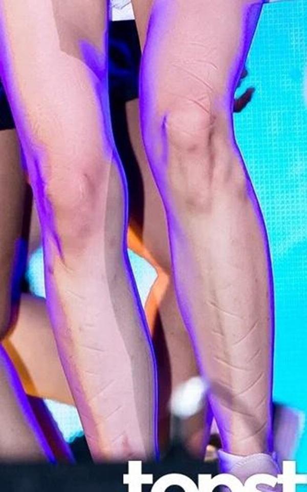 Trước Sehun, Tiffany (SNSD) cũng khiến fan xót xa với hình ảnh đôi chân dài nuột nà nay lại mang nhiều vết trầy xước. Vết thương này được cho là hậu quả của những động tác vũ đạo quỳ, trượt trên sân khấu khi cô nàng biểu diễn ca khúc solo đầu tay "I just wanna dance".