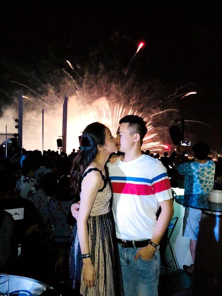 Tố Như khóa môi ngọt ngào ông xã hot boy khi đi xem lễ hội bắn pháo hoa tại Đà Nẵng mới đây.