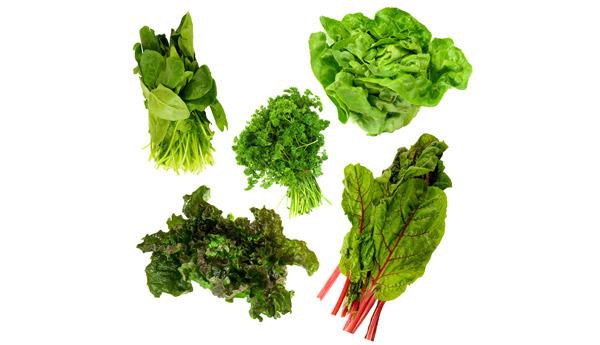 Rau xanh bao gồm cải xoăn, cải bó xôi, rau họ cải giúp duy trì sự cân bằng kiềm trong tử cung. Rau xanh cũng cung cấp các khoáng chất cần thiết cho hoạt động tối ưu của hệ thần kinh.
