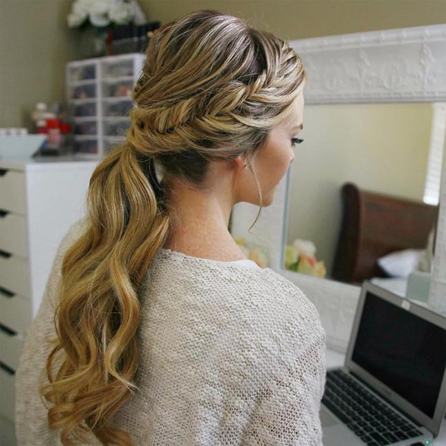 Kiểu tóc xoăn gợn sóng sẽ trở nên lộng lẫy và lãng mạn hơn bội phần khi được tô điểm thêm vài lọn tóc tết nhỏ xinh bắc ngang lưng chừng đầu. Đây là kiểu tóc mà những cô nàng sở hữu mái tóc dài nhất định phải thử 1 lần trong đời.