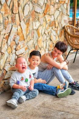 Hai nhóc tỳ nhà Trà My được thừa hưởng nhiều nét từ mẹ, nhất là bé đầu.