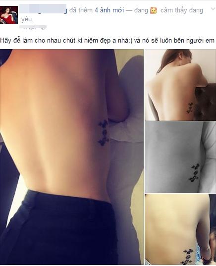 Bỏ qua mọi sự ồn ào về những mối tình tay 3 đang làm nóng diễn đàn mạng, mới đây Trà Ngọc Hằng đã thu hút dư luận đổ dồn sự chú ý khi khoe hình xăm minh chứng tình yêu với bạn trai đại gia được lưu lại trên thân thể ngọc ngà của mình. Đính kèm theo hình ảnh minh chứng tình yêu là dòng cảm xúc của người đẹp họ Trà: "Hãy để làm cho nhau chút kỉ niệm đẹp anh nhá và nó sẽ luôn bên người em ".
