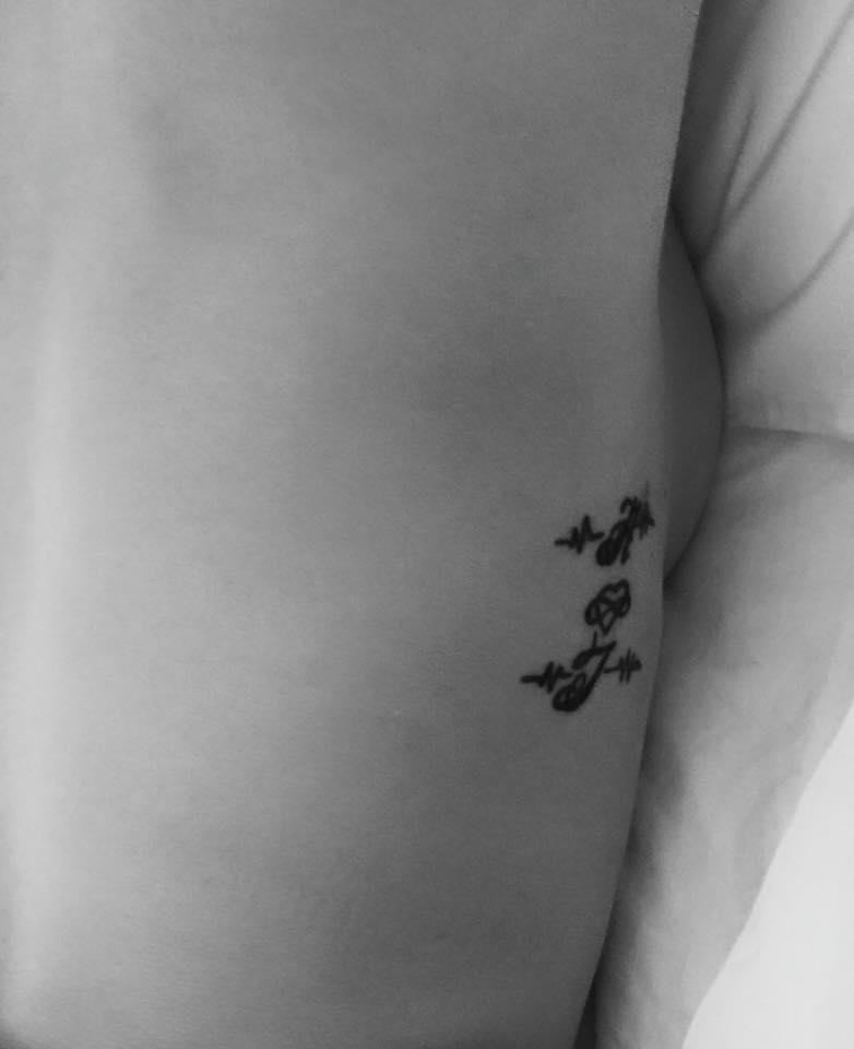 Quan sát kỹ hình xăm của người đẹp gốc Cà Mau cho thấy có chữ H (viết tắt chữ cái đầu tên Hằng", chữ T (tên bạn trai) và nối giữa hai chữ cái là hình trái tim lồng vào nhau. Đặc biệt, vị trí của "chứng tích" tình yêu trên người Trà Ngọc Hằng được xăm khá gần vùng "nhạy cảm". Nhìn Trà Ngọc Hằng chịu đau để xăm minh chứng tình yêu vào da thịt khiến nhiều người không khỏi xuýt xoa, ghen tỵ với tình yêu của cặp đôi.