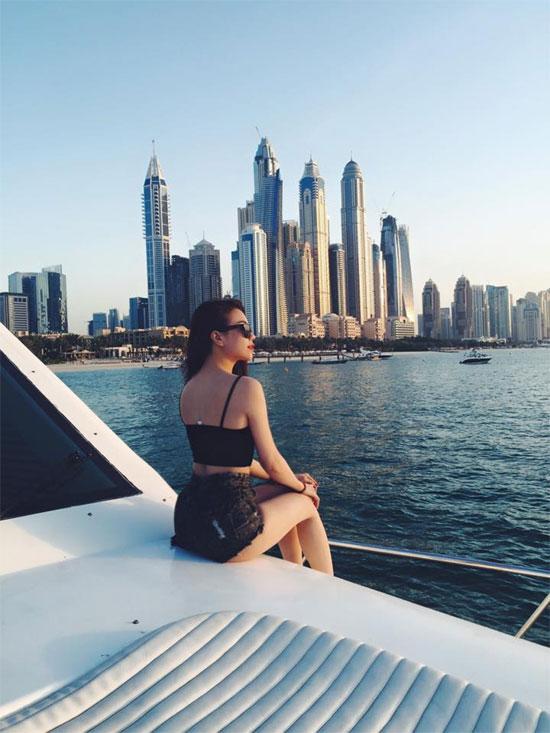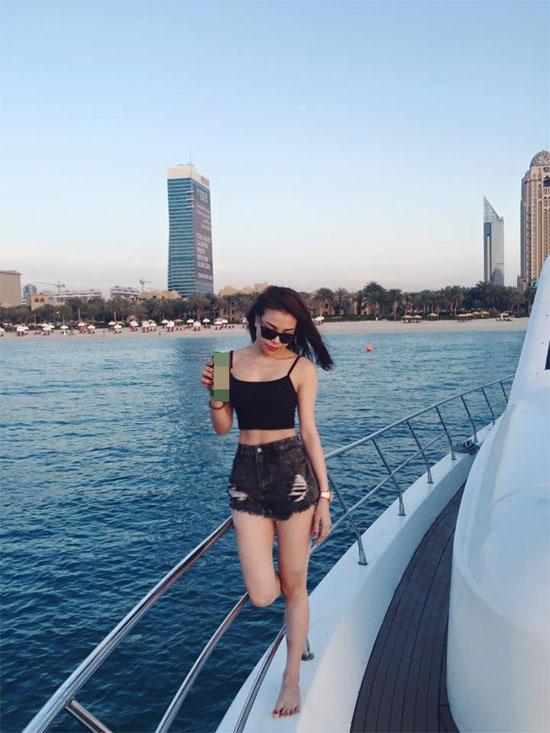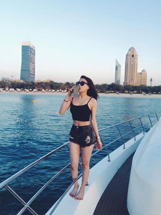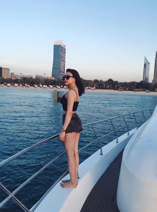 (2Sao) - Trà Ngọc Hằng tự tin khoe đường cong cơ thể nóng bỏng trên du thuyền tại Dubai.