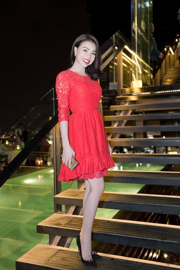 Tối qua, tham dự một sự kiện tại TP Hồ Chí Minh, Trà Ngọc Hằng nổi bật bởi bộ đầm ren ngắn dáng xoè màu đỏ rực rỡ, trẻ trung và duyên dáng. Đây là thiết kế mới ra mắt cuối năm 2015 của thương hiệu Dolce & Gabbana, hướng đến hình ảnh tiểu thư điệu đà. Thiết kế này đã từng được Hoa đán Angela Baby diện trong một sự kiện lớn tại Trung Quốc và khiến báo chí trầm trồ về gu ăn mặc tinh tế, tươi trẻ của cô. Mỹ nhân đồ hiệu của màn ảnh Hoa ngữ thường rất chịu khó cập nhật các xu hướng thời trang mới mẻ.