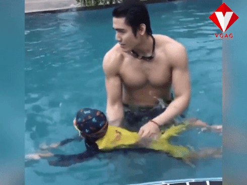 Theo đó, xuất hiện trên một số diễn đàn lớn, khoảnh khắc một chàng trai body 6 múi, gương mặt cực điển trai đang tận tình dạy bơi cho một bé trai đang nhận về sự quan tâm lớn. Trong đoạn clip kéo dài hơn 1 phút, nam chính đã dạy bé trai tập nín thở dưới nước, các kĩ năng đạp chân ra sao để nổi được trên mặt nước.