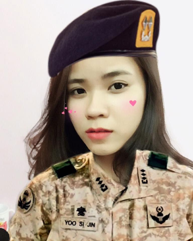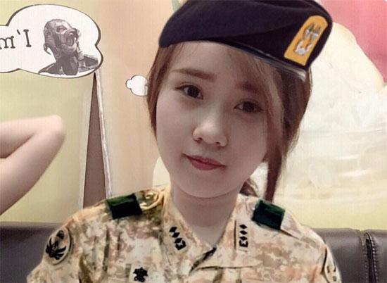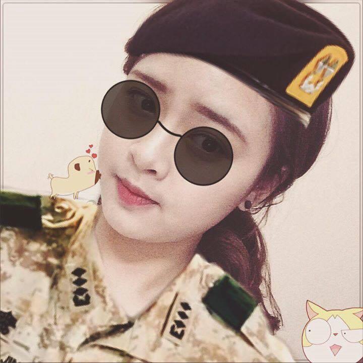 Hình ảnh hóa thân thành quân nhân cực đáng yêu của bạn Thu Trang - sinh viên trường ĐH Lao động - xã hội.