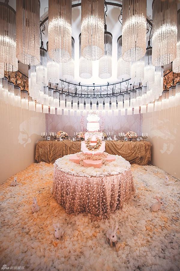 Màu sắc trắng hồng là chủ đạo cho bữa tiệc, các vị khách tham gia hầu hết cũng mặc trang phục theo màu sắc này