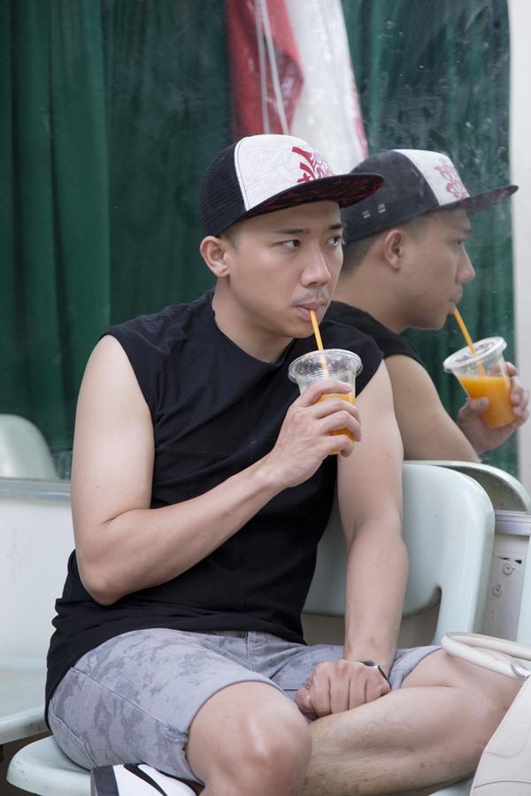 Trong buổi tập. có thể thấy Trấn Thành ăn mặc khá đơn giản với áo thun sát nách và quần ngố, đầu đội mũ lưỡi trai để thuận tiện cho việc đi lại, tập luyện chứ không chải chuốt và bảnh bao như thường thấy.