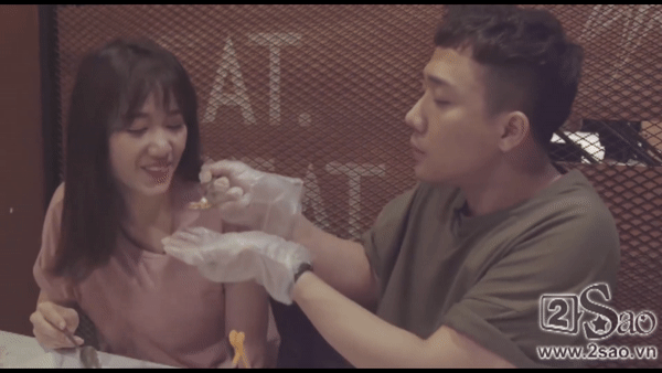 Ngồi bên cạnh nghe chồng giới thiệu về món ăn, Hari Won tiếp lời. Vừa hân hoan nói trong niềm hạnh phúc : "Vợ chồng tôi khớp và hiểu nhau lắm", nữ ca sĩ gốc Hàn vừa đeo bao tay cho chồng để chuẩn bị dùng bữa. Dành sự quan tâm cho Trấn Thành nhưng giọng ca Anh cứ đi đi lại đón nhận hành động trái ngược từ bạn đời.