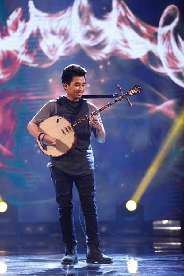 Tiếp đó, với tiết mục độc tấu đàn nguyệt điêu luyện, sáng tạo khi kết hợp giữa nhạc cụ dân tộc và nhạc điện tử hợp thời, anh chàng Nguyễn Trung Lương là thí sinh thứ hai đại diện cho bán kết 4 có mặt tại Vòng Chung kết.