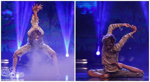 Kinh dị nhất là màn bò đến bàn giám khảo bằng tay và cùi chỏ rồi kết thúc bằng màn hù doạ xoay cổ 180 độ khiến Trấn Thành “hồn bay phách lạc”. Ý tưởng tốt, hoá trang xuất sắc và nhất là những động tác mới khiến người xem không tin vào mắt mình sẽ là tấm vé thông hành dẫn Ngọc Hải vào Gala chung kết.