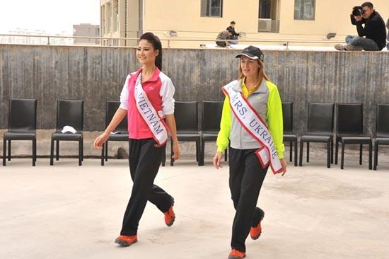 Đại diện của Việt Nam đeo dải băng chuẩn tên quốc gia trong các hoạt động bên lề của Mrs World 2013