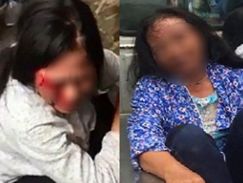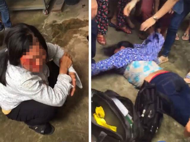 Hình ảnh 2 người phụ nữ bị người dân đánh đập ở Sóc Sơn vì nghi bắt cóc trẻ con. Ảnh chụp màn hình.