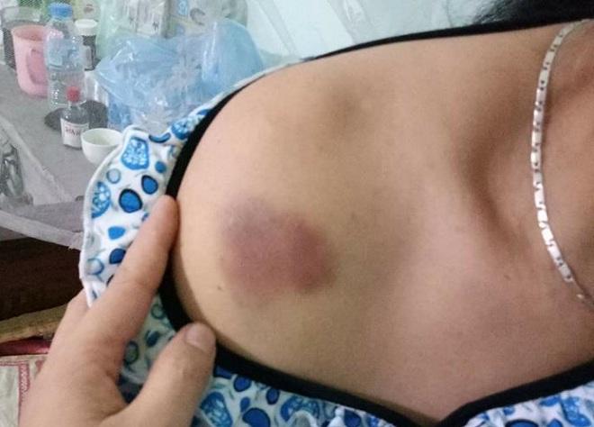 Những vết thương trên cơ thể bà Phúc vẫn tím tái.