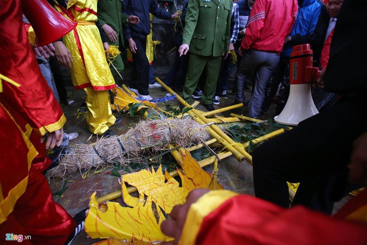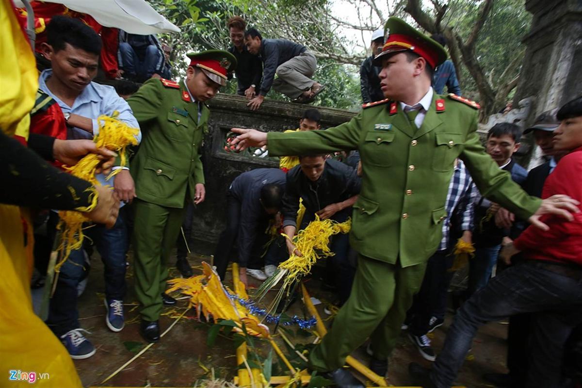 Đoàn tùy tùng mới rước kiệu hoa tre đến đền Thượng thì hàng chục thanh niên lao vào cướp.