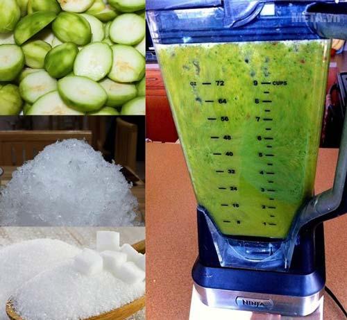- Cóc sau khi mua về, bạn đem rửa sạch, dùng dao khía đều dọc quả cóc rồi lách mũi dao tách thành từng miếng nhỏ rồi cho vào máy xay sinh tố, xay nhuyễn.