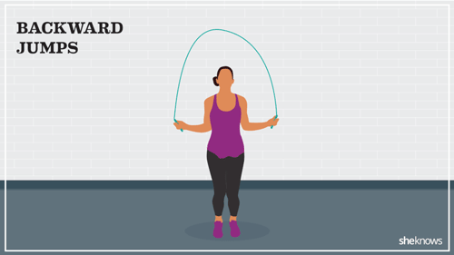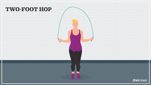 - Quăng dây về phía trước và nhảy lên khi dây gần tới chân của bạn sao cho dây lọt qua phía dưới chân ra phía sau.