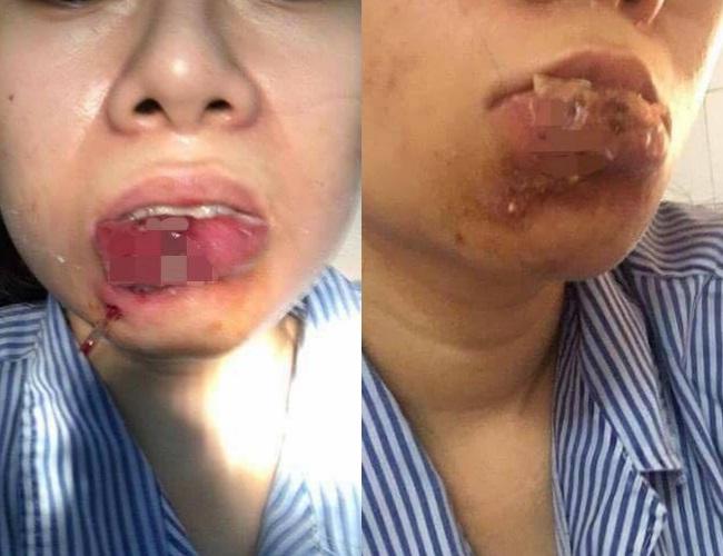 Tuy nhiên, không lâu sau đó môi chị H. bắt đầu sưng tấy, có mủ chảy dịch, đau nhức khiến chị phải đến bệnh viện kiểm tra. Tại đây, các bác sĩ đã hút trực tiếp từ môi N.T. H rất nhiều chất làm đầy lẫn với mủ trắng, tuy nhiên tình trạng của chị vẫn không được cải thiện do vậy chị H. đã được phẫu thuật để cắt bỏ phần hoại tử ở môi dưới.