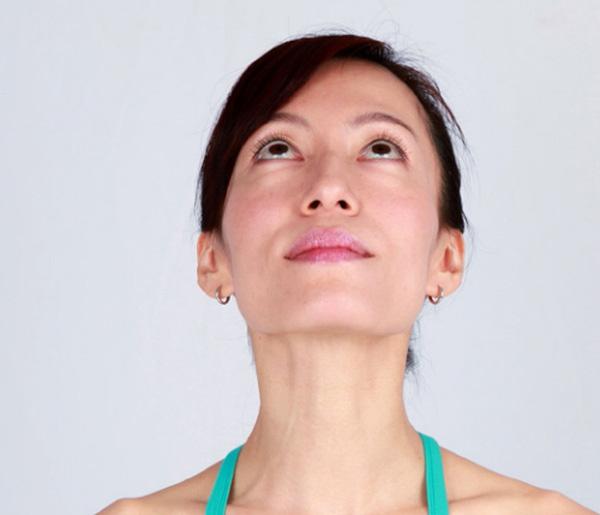 Mỉm cười nhẹ nhàng, từ từ dùng hai bàn tay áp nhẹ từ khuôn môi, kéo nhẹ nhàng xuống hết cổ, tái thực hiện động tác từ 8-10 lần giúp tăng cường tuần hoàn máu dưới cẳm và cổ, chống chảy xệ, hai cằm.