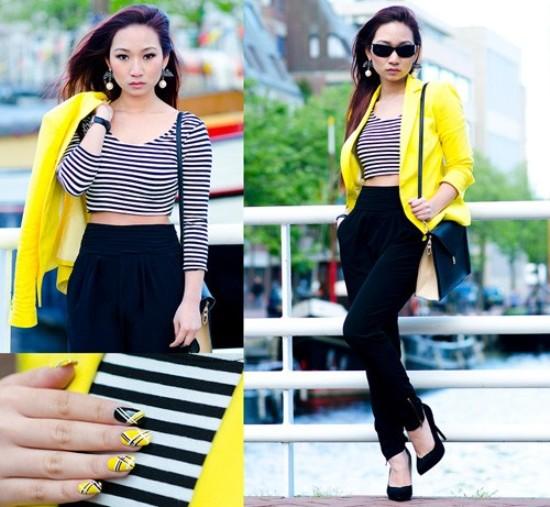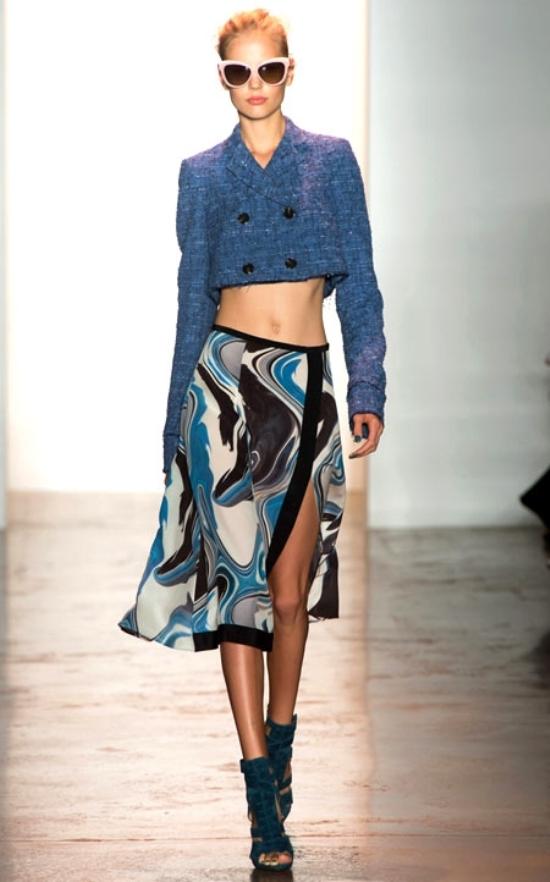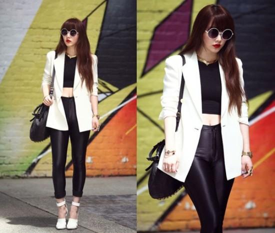 Bạn cũng có thể tận dụng những chiếc áo croptop của mùa hè cùng với áo khoác.