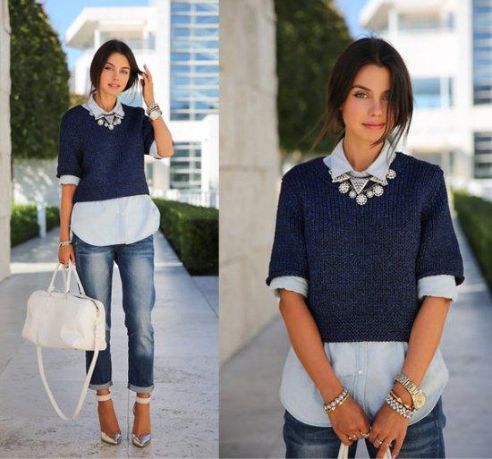 Khi trời lạnh hơn và để tạo phong cách tinh tế hơn, bạn có thể phối croptop len, nỉ, dạ cùng sơ mi. Với cách phối này, các bạn gái có vòng eo không được săn chắc lắm cũng có thể áp dụng.