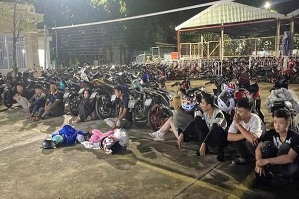 Trong quá trình di chuyển, các đối tượng không đội mũ bảo hiểm, kẹp 3, lạng lách, đánh võng, chạy xe với tốc độ cao, rú ga, bấm còi gây mất an ninh trật tự.