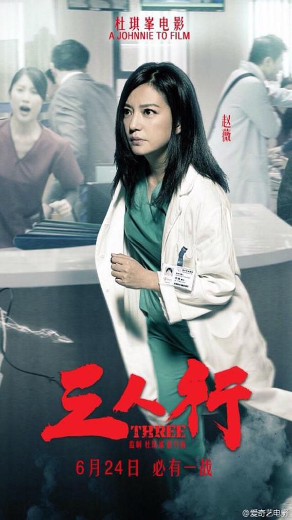 Cũng trong buổi họp báo, Triệu Vy đã chai sẻ rất nhiều về bộ phim "Tam Nhân Hành" của đạo diễn Đỗ Khải Phong, đây là phim với chủ đề hắc bang, trong đó Triệu Vy sẽ vào vai một bác sĩ cố gắng phẫu thuật cho tên tội phạm (Chung Hán Lương). Bộ phim không chỉ chú trọng vào các cảnh hành động mà còn khắc họa rõ nét sự đấu tranh nội tâm của từng nhân vật. Toàn bộ các cảnh quay đều thực hiện trong một bệnh viện, và các diễn viên chính đều có mặt tại trường quay trong suốt thời gian quay phim.