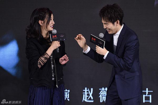 Vào chiều ngày 14/4, buổi họp báo phim "Tam Nhân Hành" đã chính thức diễn ra với sự tham gia của hai diễn viên chính Triệu Vy và Chung Hán Lương. Trong khi Chung Hán Lương xuất hiện khá bảnh bao và trẻ trung thì Triệu Vy lại hoàn toàn trái ngược, già dặn và xuề xòa.