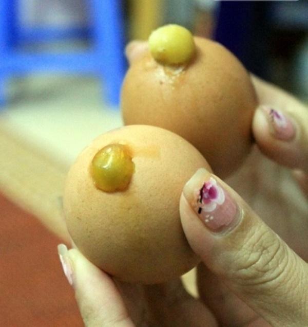 Các quả trứng không vỡ hay nứt nhưng phần đục lỗ cho gia vị vào lại bung bét, trứng bên trong trào ra ngoài nhìn chẳng ai còn muốn ăn. Nhiều cư dân mạng tranh nhau mổ xẻ và nhận xét xem hình dáng quả trứng giống với thứ gì.