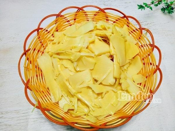 Bước 2: Măng rửa sạch, thái lát mỏng vừa ăn.