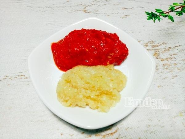 Bước 3: Tỏi bóc vỏ, băm thật nhuyễn. Ớt đỏ bỏ hột, chần qua nước nóng già rồi băm thật nhuyễn.
