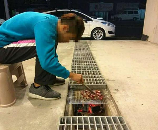 Hình ảnh chàng trai nướng thịt trên cống gây xôn xao.