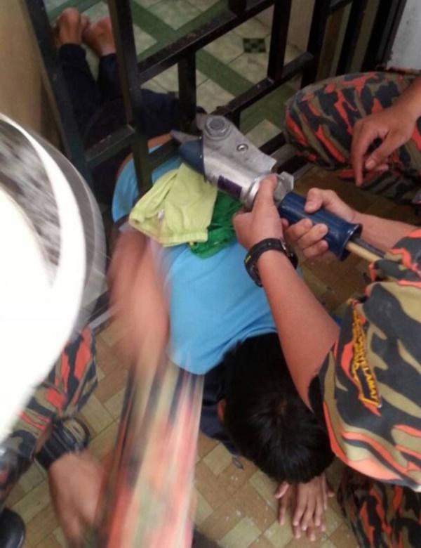 "Khi đến nơi, chúng tôi thấy cậu bé bị kẹt giữa hai thanh cửa. Sau khi đánh giá tình hình, chúng tôi dùng máy cắt để giải cứu Muhamad. Quá trình này diễn ra trong khoảng 5 phút", Azmel Kamarudin - Trưởng phòng Cứu nạn và cứu hỏa thành phố Shah Alam - cho hay.