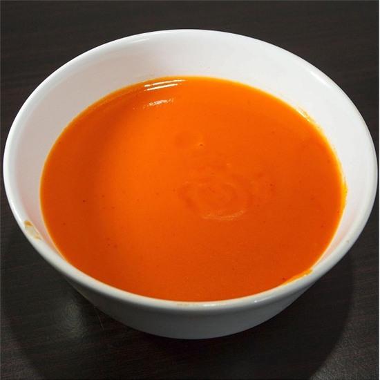 Đặt một túi trà vào hộp nhựa sau đó thêm nước lạnh vào ngâm, rồi thả vào máy giặt, chọn chế độ nước gần 90 độ C và cho máy quay với tốc độ 400 vòng quay/phút để hộp trà không bị hấp hơi hoàn toàn. Giống như đa số món ăn khác, trước khi đến giai đoạn xả nước lạnh phải dừng ngay máy giặt lại. Sau đó thử đổ thành quả vào một cốc nước, bạn sẽ nhìn thấy nó giống hệt một cốc trà nóng bình thường luôn, dù hơi có vẻ quá tay một chút. 2. Súp cà chua