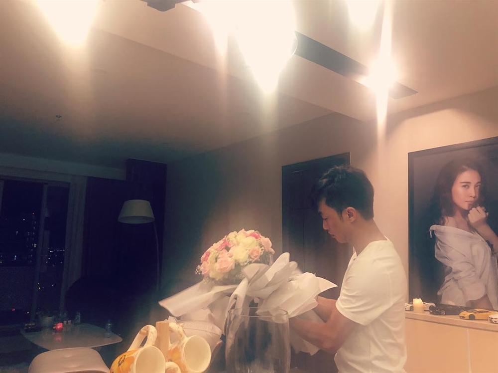 Đăng tải bức hình Cường Đô La đang chăm chút bó hoa trên tay, Đàm Thu Trang đặt hastag khẳng định chủ quyền cùng lời bật mí hóm hỉnh, gọi người tình là: "Chú bé bông".