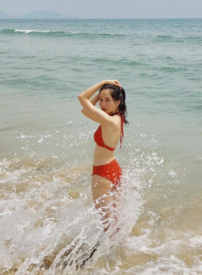 Mới đây nhất, Trúc Anh "tung" bộ ảnh diện bikini nóng bỏng mắt như để "chữa cháy". Khác hẳn với thân hình nặng nề trong bức ảnh gây xôn xao trước đó, nữ chính Mắt Biếc diện bikini hồng điệu đà với thiết kế cắt xẻ tinh tế, tôn lên vòng eo thon gọn.