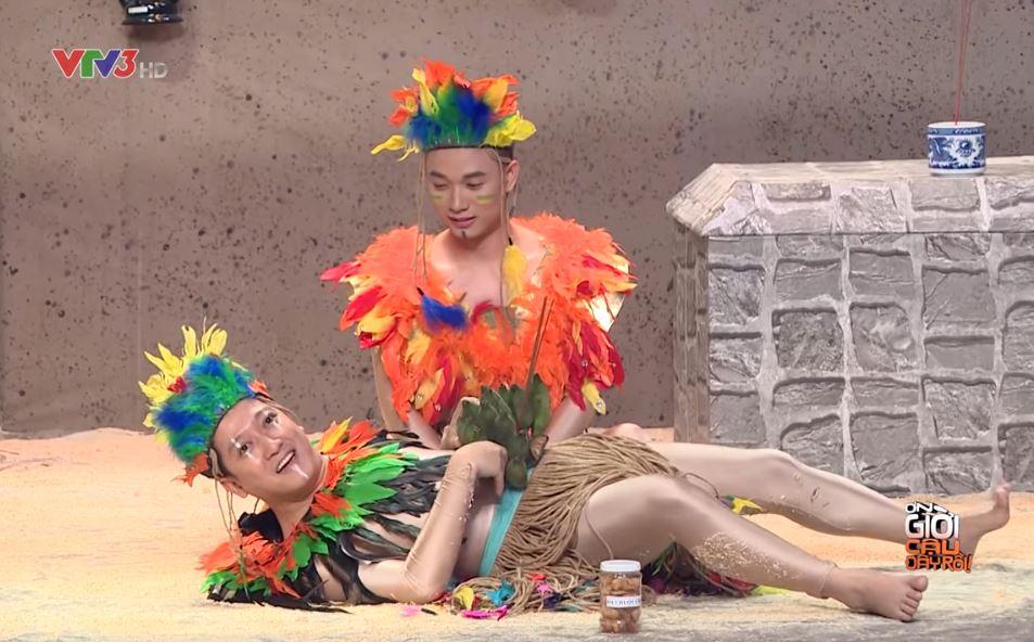 Cùng trang phục bó sát màu da, Trúc Nhân - Trường Giang nhảy múa tưng bừng trên sân khấu