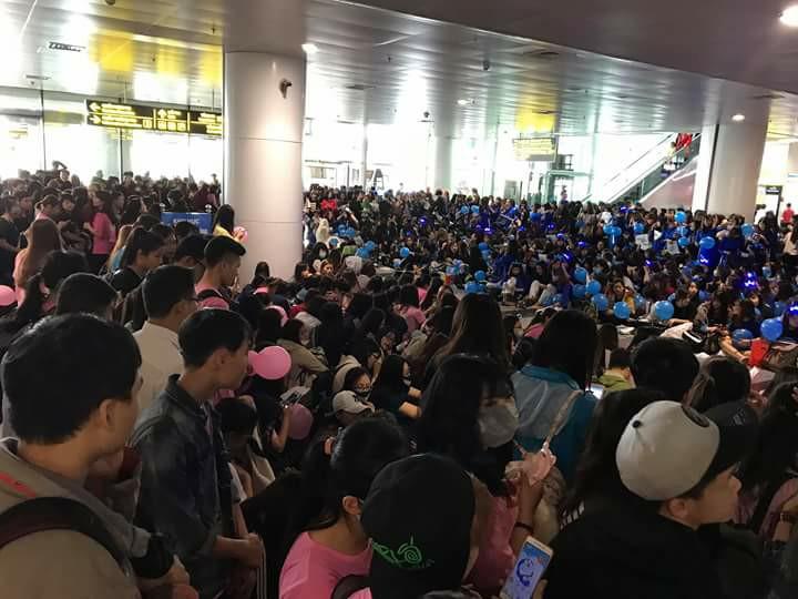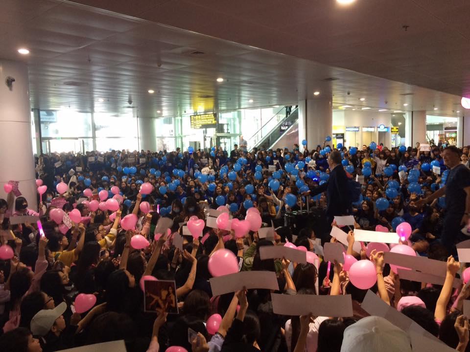 Trong khi đó tại sân bay Nội Bài thời điểm hiện tại, các fan hâm mộ của SNSD và Super Junior vẫn đứng ngay ngắn thành hai hàng để chờ đón thần tượng. Các fan còn đồng thanh vẫy bóng và hát vang những ca khúc của thần tượng mình.