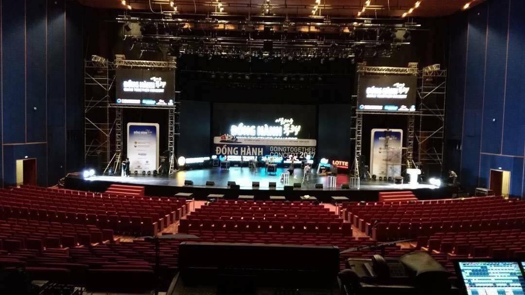 Quang cảnh sân khấu các nhóm nhạc sẽ trình diễn vào tối nay